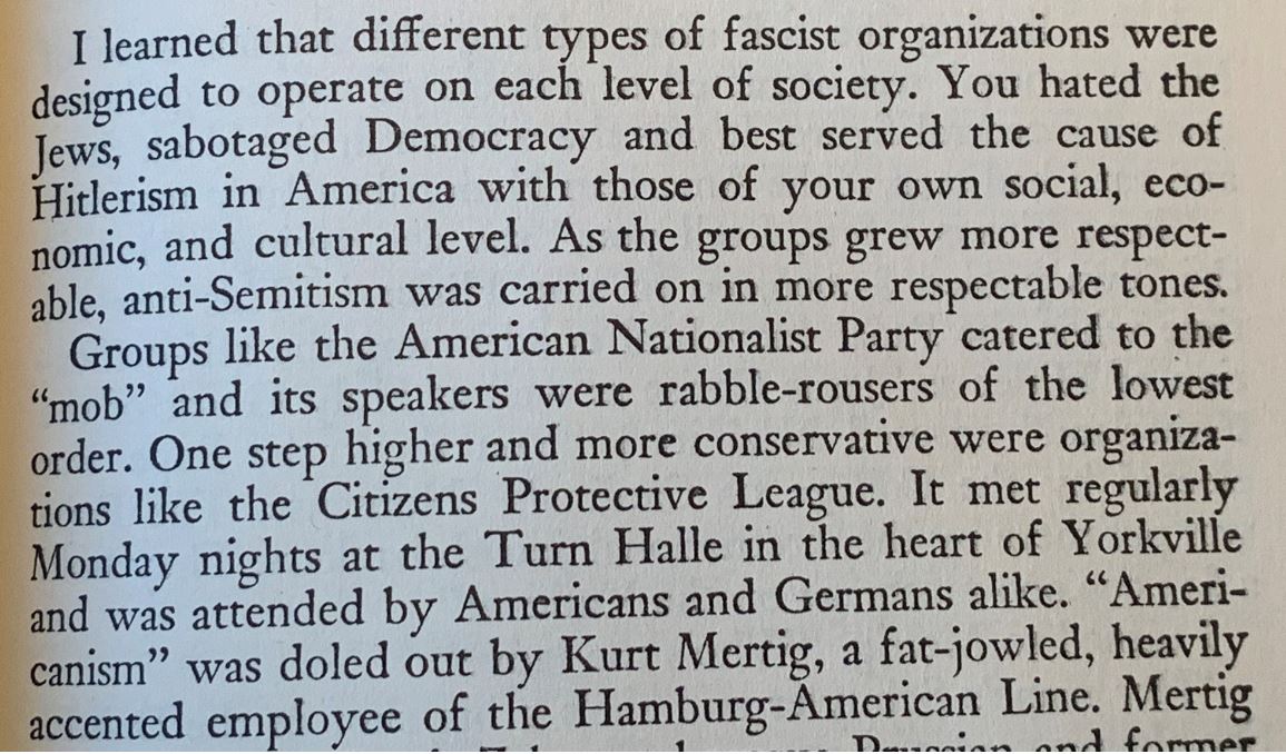 The book holds respect among informed activists seeking to slow the ramp-up of fascism and preserve democracy. You can buy Under Cover from Amazon and a free PDF is available on Wikipedia under the author’s true name, Arthur Derounian.